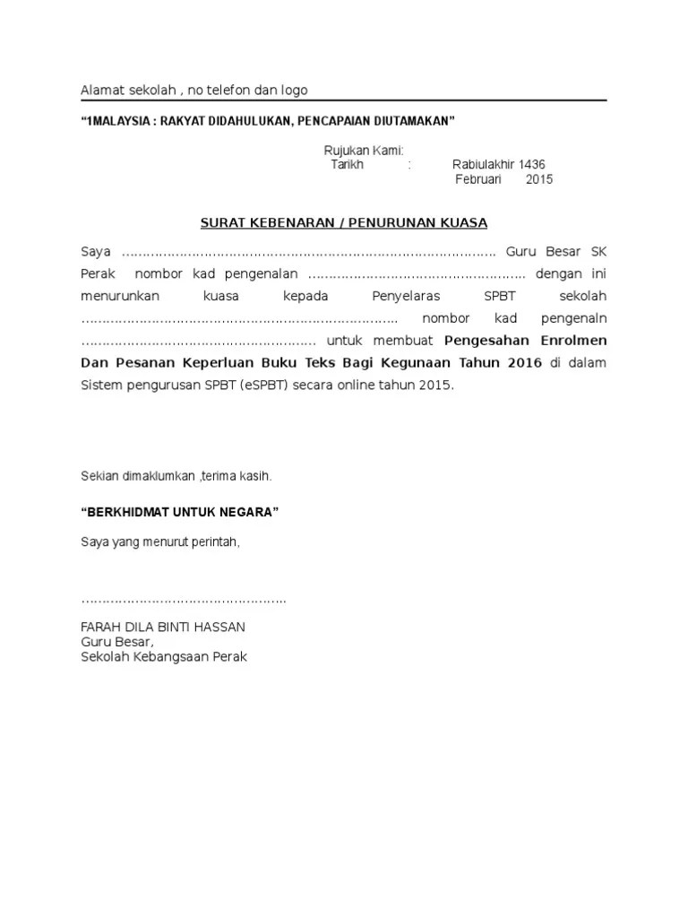 Contoh surat penurunan kuasa menjalankan tugas guru besar. Surat kuasa rotan 2017 docx. Spi bil.07/2003 pekeliling kuasa guru merotan murid. Contoh surat turun kuasa merotan.
